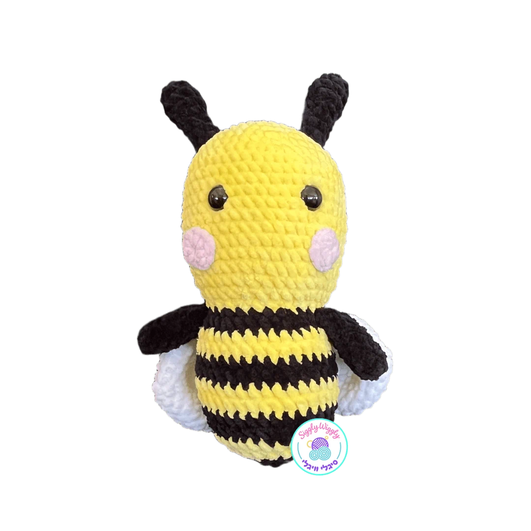 דבורה סרוגה ומתוקה עם כנפיים רכות ולחיים ורודות. בובה שמביאה איתה שמחה ואור.