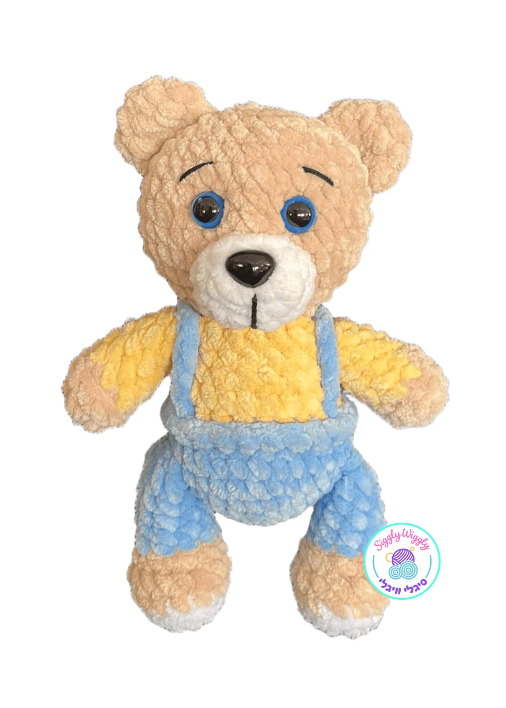 דובי סרוג בעבודת יד בגודל בינוני (20 ס״מ), רך ומלא אופי - חבר מתוק לחיבוק, משחק וקישוט חדר ילדים.